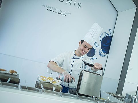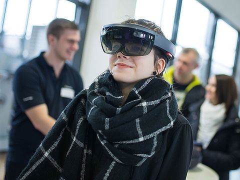 Weiter ging es dann am 17. März mit dem GVD Open House Aktionstag – direkt vor Ort bei uns in Bubsheim. An diesem jährlich stattfindenden Tag der offenen Tür liegt der Fokus bei allen teilnehmenden Unternehmen auf den klassischen Zerspanungsberufen und Studienmöglichkeiten, wie bspw. Zerspanungsmechaniker/-in, Industriemechaniker/-in oder dem besonderen Studium Plus Maschinenbau. Bereits seit einigen Jahren öffnet Häring die Türen der Akademie für die potentiellen Nachwuchskräfte. So standen auch in diesem Jahr 20 Teammitglieder, darunter Auszubildende, Studierende, Fachexperten und Ausbilder/-innen den rund 75 interessierten Besuchern Rede und Antwort: Neben einer Azubisprechstunde und diversen Ständen mit Informationsmaterial (bspw. rund um die Häring Juniorenfirma, der Einführung ins neue Karriereportal und vielen Ausbildungs-Postkarten zum Mitnehmen) gab es auch allerlei Möglichkeiten, den Worten Taten folgen zu lassen. Einen eigenen Stiftehalter erstellen, erste Übungen mit der Holo-Lens durchführen, die Robotertechnologie am selbstprogrammierten Schokoroboter unserer Mannschaft erleben oder beim Anki Drive mit kleinen Robotern ins digitale Autorennen ziehen – auf die Gäste warteten spannende Highlights, schließlich hatten wir in unseren eigenen Räumlichkeiten jede Menge Möglichkeiten die Berufswelt der Anton Häring KG näherzubringen. Da durfte zum Abschluss ein leckeres Essen im Betriebsrestaurant ANTONIS für unsere Gäste nicht fehlen.